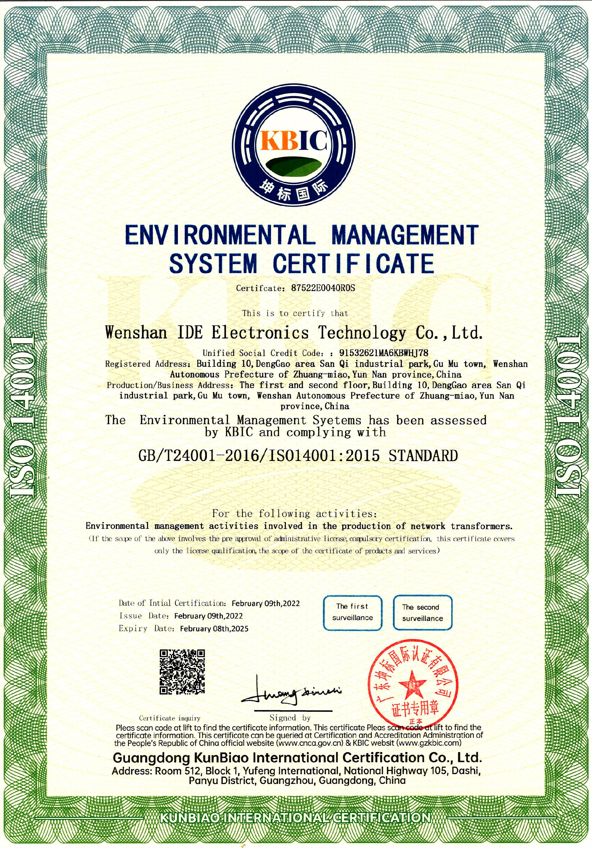 14001環(huán)境管理體系證書-英文版                                                  14001環(huán)境管理體系證書-中文版