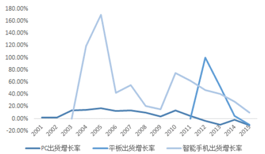半導(dǎo)體是需求推進的市場,在過去四十年中,推動半導(dǎo)體業(yè)增長的驅(qū)動力已由傳統(tǒng)的PC及相關(guān)聯(lián)產(chǎn)業(yè)轉(zhuǎn)向移動產(chǎn)品市場,包括智能手機及平板電腦等,未來則可能向可穿戴設(shè)備、VR/AR設(shè)備轉(zhuǎn)移。