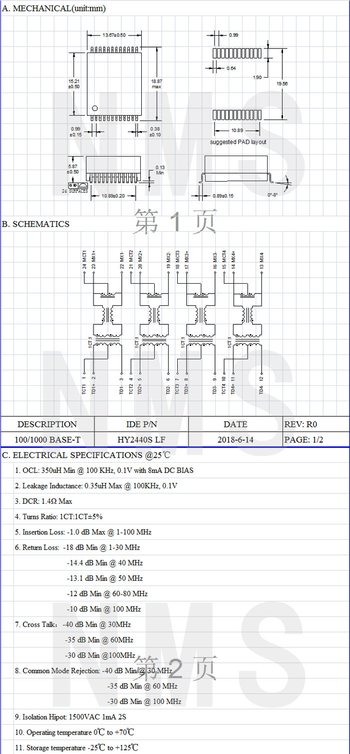 產(chǎn)品備注:SMD HY2440S LF產(chǎn)品系列